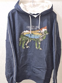 The Wolf Sketch Sustainable Hoody fetures a white line running down each of the outer arms, as well as a white inner layer inside the hood. This hoody is made from recycled materials.